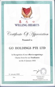 2026年初,1月31日,GO Holdings在Willing Hearts的支持下发起了一项回馈社会的活动,旨在帮助弱势家庭。作为活动的一部分,我们的团队分发了由GO Holdings准备的爱心礼包和由Willing Hearts准备的便当,确保将必要的援助送到有需要的人手中。