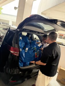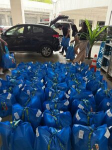 To make the event a success, all 160 goodie bags were carefully prepared a day in advance in our office. Our team took the time to assemble the bags thoughtfully, ensuring each contained items that would bring both practical support and a small moment of joy to the beneficiaries. This hands-on preparation reflected our commitment to giving back and creating a meaningful experience for those we were helping.
